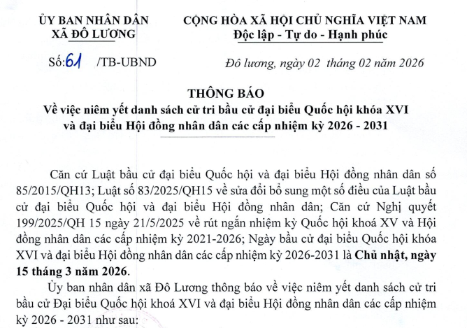 Chiều ngày 09/02/2026, Cơ quan Chính quyền xã Đô Lương đã tổ chức Hội nghị Cán bộ, công chức, viên chức và người lao động năm 2026. Đây là sự kiện có ý nghĩa đặc biệt quan trọng để đánh giá bản lĩnh và hiệu quả điều hành của bộ máy chính quyền sau một năm thực hiện sáp nhập địa giới hành chính. Hội nghị đã không chỉ nhìn lại những con số tăng trưởng kỷ lục mà còn thẳng thắn chỉ ra các tồn tại, kiện toàn bộ máy nhân sự và khơi dậy khí thế thi đua sôi nổi cho năm bản lề 2026.